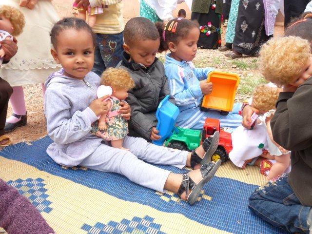 La campaña se acercó a la guardería de Id Ali Oubala,  que atiende a 20 niños. Se trata de uno de los centros más modestos de la zona, en el que aun hoy las clases se imparten sin luz eléctrica y en donde por primera vez los niños accedieron a un juguete.